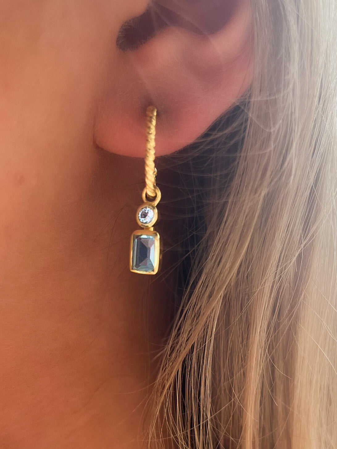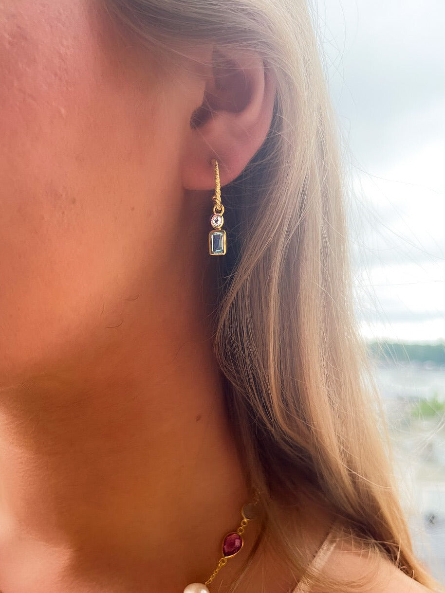 Näissä korvakoruissa yhdistyvät hienostunut muotoilu ja ajaton kauneus. Kierteinen lenkkimalli luo näyttävän siluetin, ja kirkas sininen topaasi tuo korun ilmeeseen raikkautta ja eleganssia. Sininen topaasi on joulukuun syntymäkivi, ja sen uskotaan symboloivan viisauden, ilon ja sisäisen rauhan voimaa.