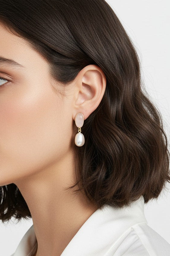 Talia korvakorut, joissa on näyttävät jalokivet ja helmiä.